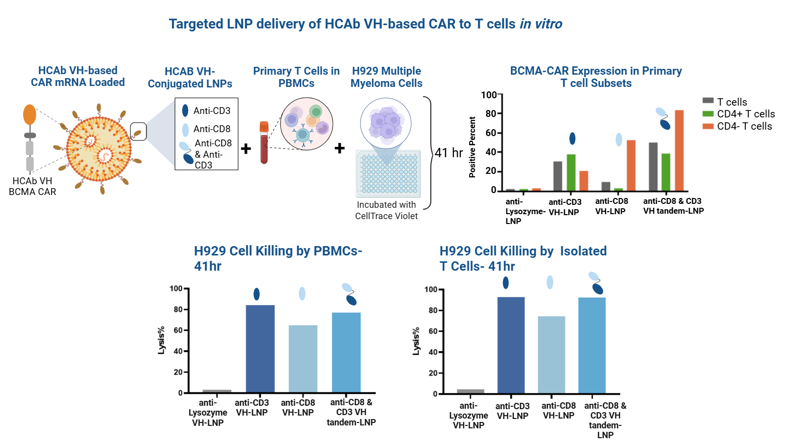 Beyond supporting CAR binding, HCAb VH domains can be directly used to functionalize LNPs and lentiviral particles, two major delivery modalities leading in vivo CAR strategies.
